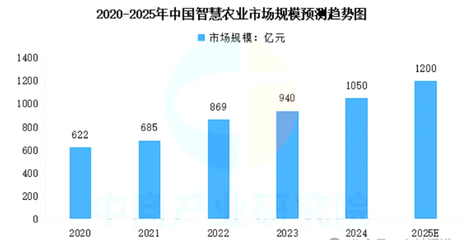 在全球智慧農(nóng)業(yè)市場的快速增長中,中國也扮演著重要角色。中國作為農(nóng)業(yè)大國,對智慧農(nóng)業(yè)技術(shù)的需求和應(yīng)用尤為迫切。政府和企業(yè)紛紛加大投入,推動智慧農(nóng)業(yè)技術(shù)的研發(fā)和應(yīng)用。【鄉(xiāng)村聞道】認(rèn)為智慧農(nóng)業(yè)市場規(guī)模連年增長,2024年中國智慧農(nóng)業(yè)市場規(guī)模超千億元,達(dá)到約1050億元,預(yù)計(jì)2025年將達(dá)到1200億元。